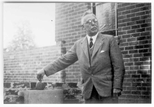 By the early 1930s, the congregation and Sunday School numbers had grown as the town developed. To accommodate the increase, larger premises were opened in 1937: a side-room extension with sliding doors, kitchen and toilet facilities, and a porch over the main entrance. The stone-laying ceremony by several local worthies took place the previous year. In the photograph below is Mr Percy Inge, a local dentist who lived at Larchwood in Hursley. The stone he laid can still be seen today, immediately to the left of the main entrance to the Age Concern Centre. Other stones were laid by Mrs T H Hill and Mrs C W Bosworth.