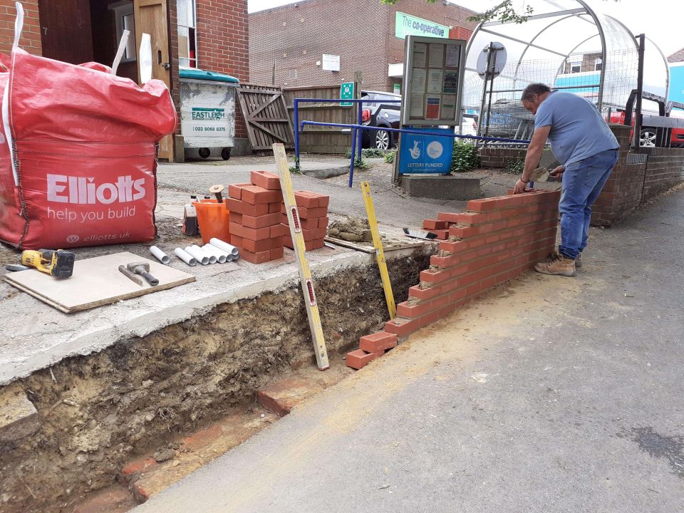 Maintaining the fabric of the property continued to be a priority. In danger of the front wall bounding Brownhill Road collapsing, work to replace/repair it started and was completed in May 2022.